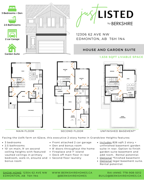 Located just minutes from the U of A farm, the Saville Centre and the Evergreen Pond which provides a nature sanctuary to walk around
